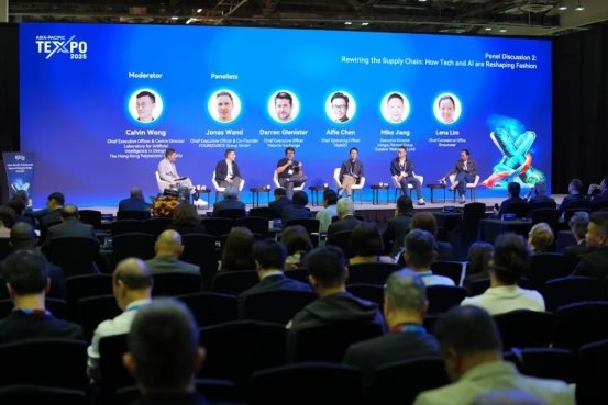 “专题讨论2:科技与AI驱动的纺织服装供应链变革”由香港理工大学人工智能设计研究所首席执行官Calvin Wong主持。该环节汇聚了FOURSOURCE Group首席执行官兼联合创始人Jonas Wand,Material Exchange首席执行官Darren Glenister,浙江凌迪数字科技有限公司首席运营官陈鑫平,江苏罗曼罗兰集团户外新材有限公司总经理江南,Browzwear首席商务官Lena Lim五位嘉宾,清晰地勾勒出AI驱动纺织服装供应链变革的图景,以数据为基础、以赋能为目的、需生态协同、并由领导力驱动的深刻变革。他们一致认为,拥抱AI并非追逐时髦,而是关乎未来竞争力的战略选择。成功的关键在于将AI与深厚的行业知识相结合,通过持续的实验、学习与协作,逐步构建起更敏捷、透明、高效且可持续的智慧供应链。